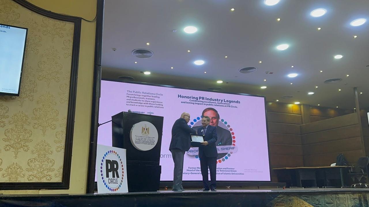 كرّم المنتدى الأول للعلاقات العامة معالي الأستاذ الدكتور سامي الشريف، الأمين العام لرابطة الجامعات الإسلامية ووزير الإعلام الأسبق، تقديراً لمسيرته العلمية البارزة كأحد أعلام الإعلام في مصر والعالم العربي.