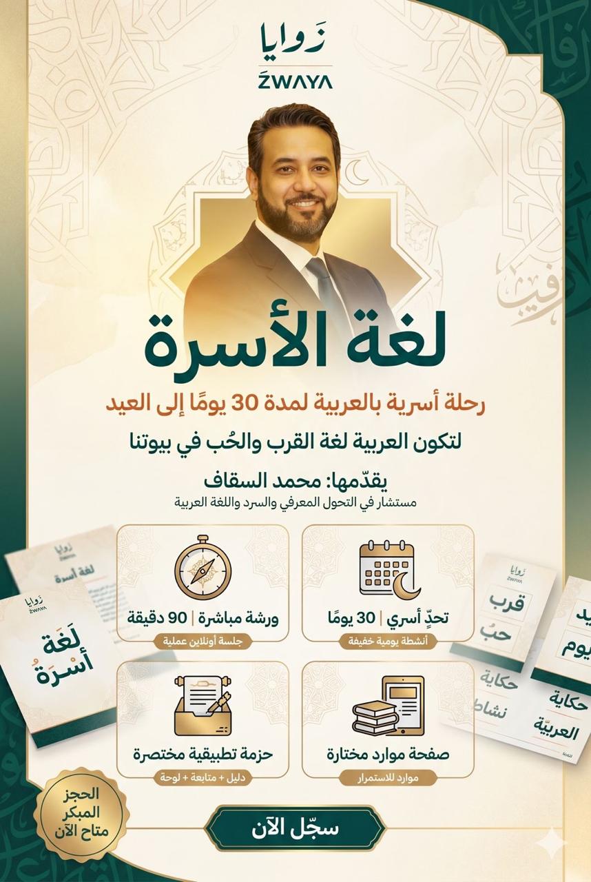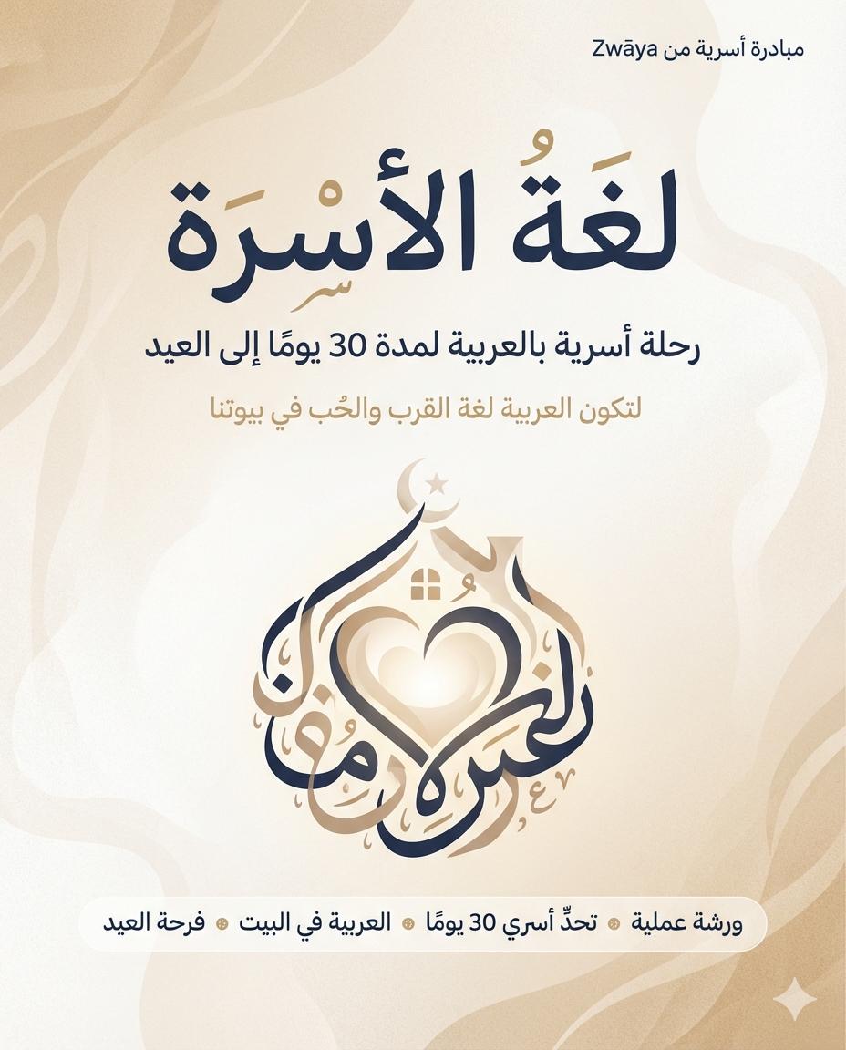منصة "زوايا" (ZWAYA)، أعلنت إطلاق مبادرتها الجديدة بعنوان "لغة الأسرة"، وهي رحلة معرفية تفاعلية تمتد لمدة 30 يوما وتستمر حتى حلول عيد الفطر المبارك.