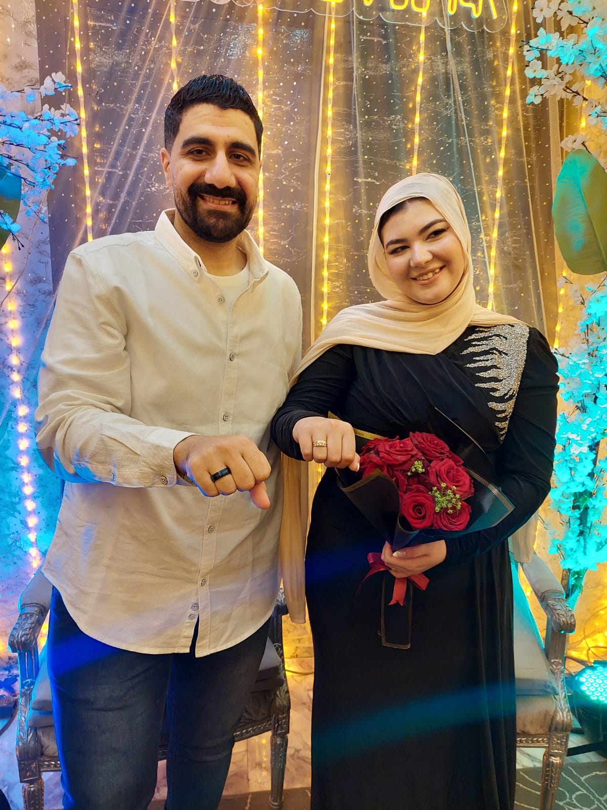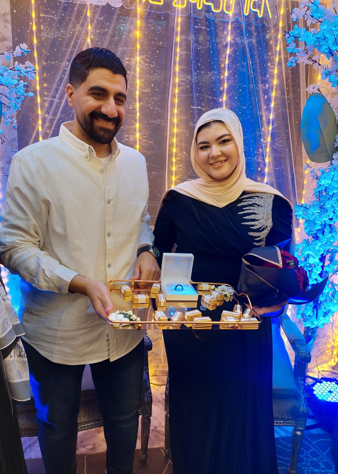 وأقيمت مراسم الخطوبة في نطاق عائلي ضيق، بحضور أفراد الأسرتين فقط، حيث سادت أجواء من البهجة والسعادة بين الحضور، وسط تمنيات الجميع للعروسين بحياة مليئة بالحب والاستقرار.